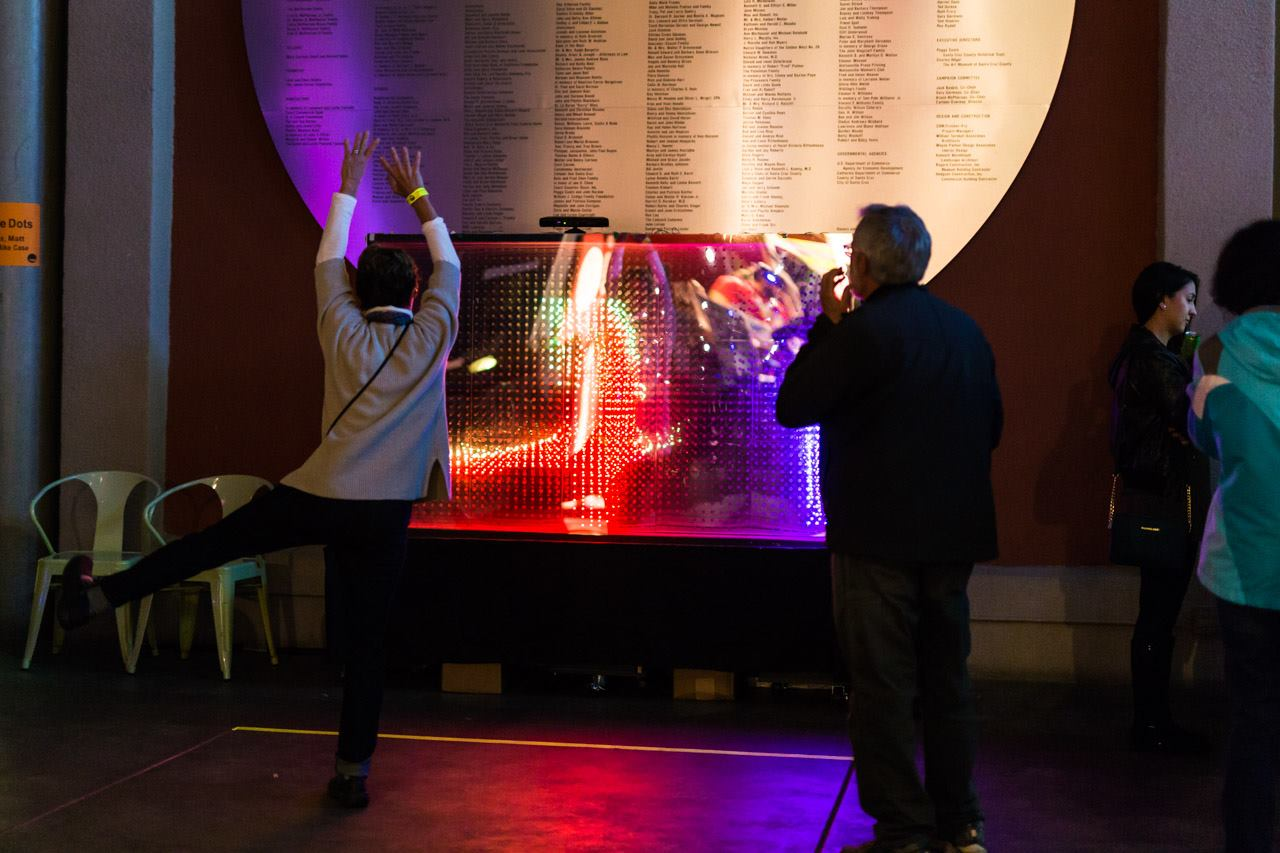 Spearheaded an electronic art installation called 'Kinect the Dots', a large-scale grid of approximately 1,900 LEDs which displays RGB silhouettes of nearby people in real time. This has been showcased at the Bay Area Maker Faire (received 2 editor's choice awards), )'(, and Santa Cruz Glow.